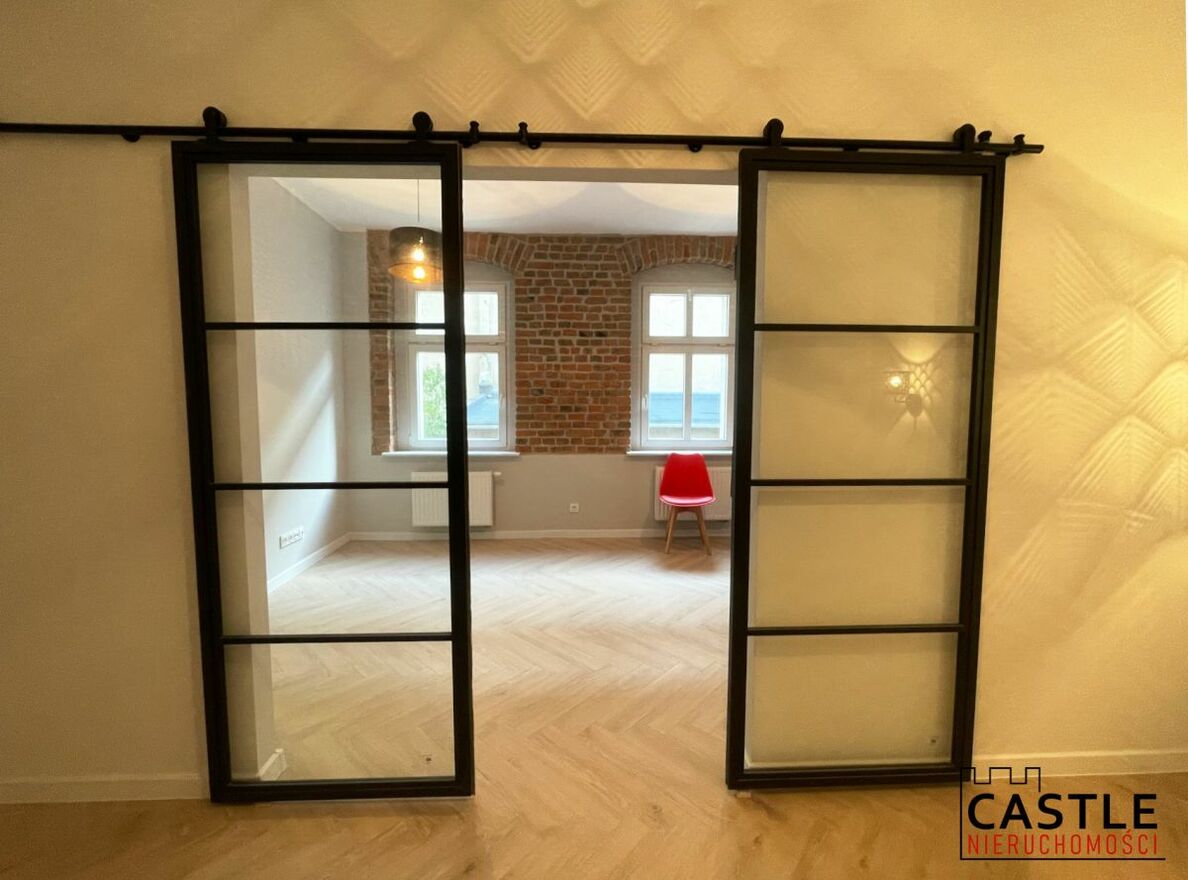 -salon z wydzieloną częścią sypialnianą oddzieloną nowoczesnymi loftowymi -drzwiami - idealne dla pary, singla lub pod wynajem