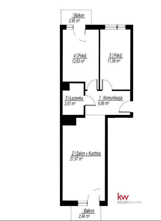 Dwa balkony o powierzchni 2,85 m2.