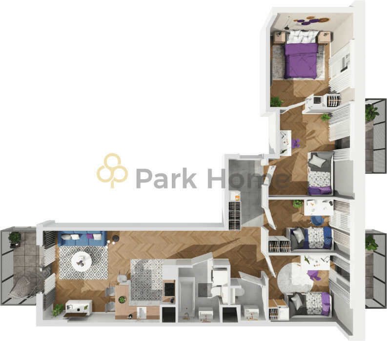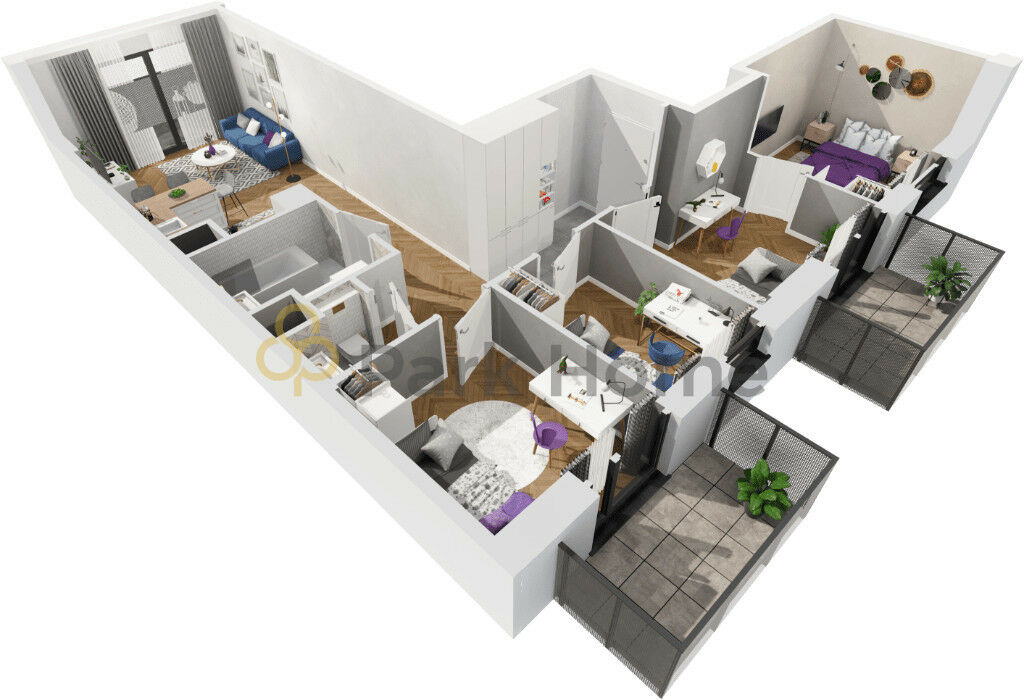 Do mieszkania przynależą dodatkowo trzy balkony.