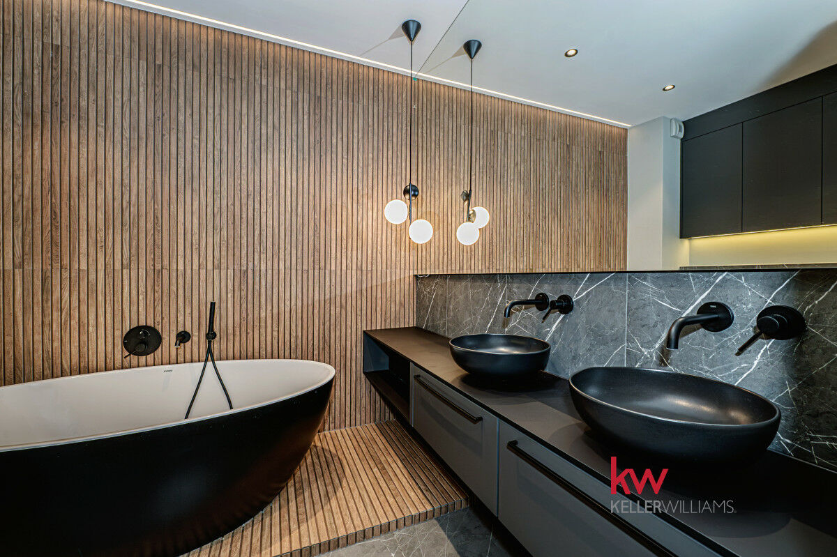 ● Elegancka łazienka z wolnostojącą wanną, druga łazienka z prysznicem, osobna