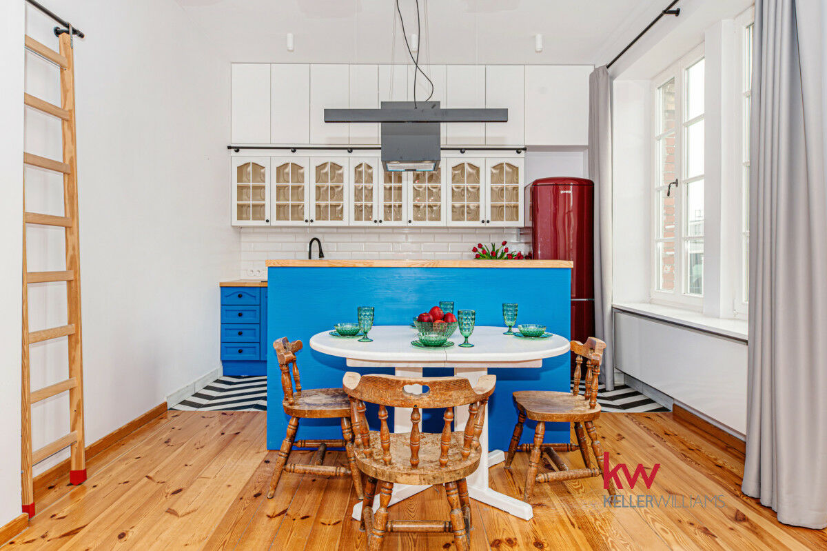 Ten unikatowy apartament łączy historyczny urok kamienicy z nowoczesnymi udogodnieniami, w tym wygodną windą w budynku.