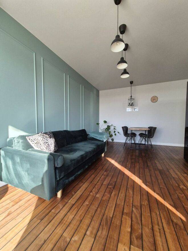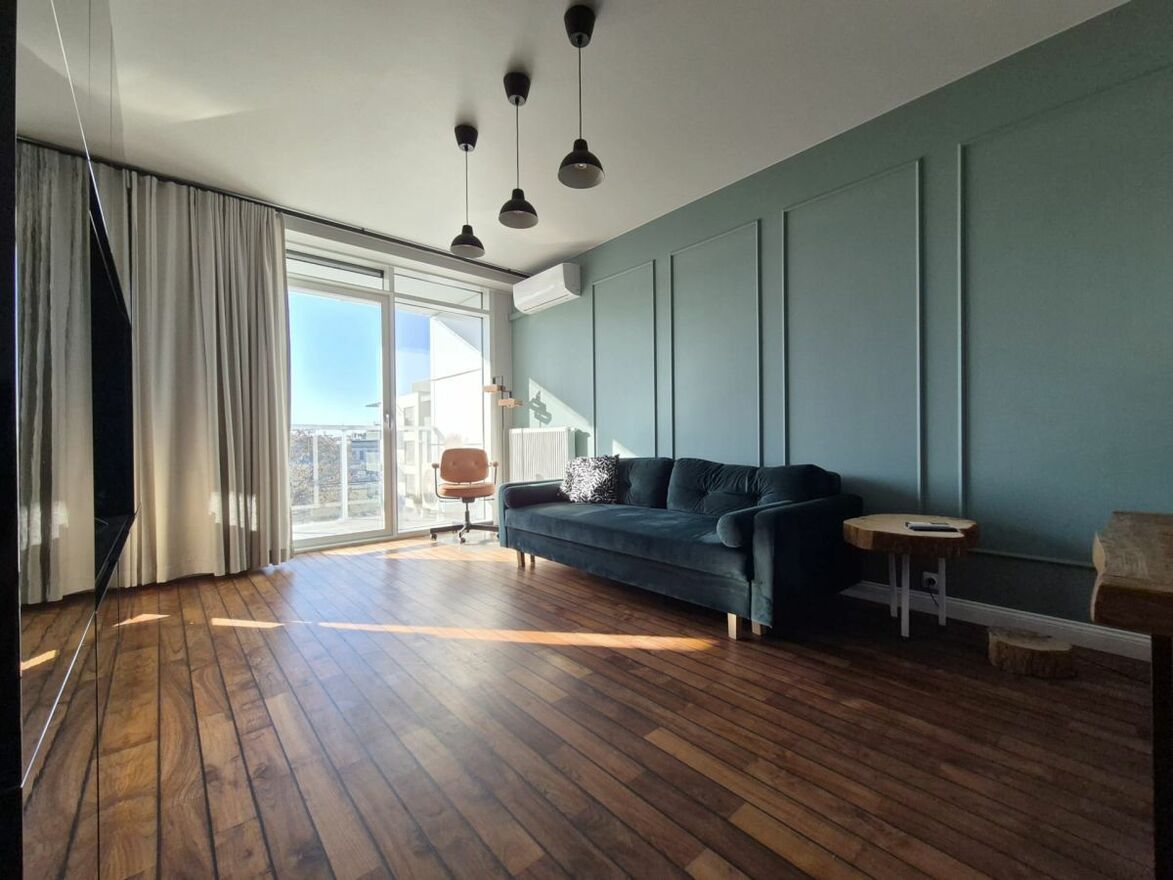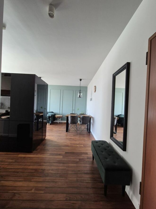 Apartament jest jasny, słoneczny i bardzo dobrze doświetlony dzięki dużym oknom. Wykończony w wysokim standardzie - na podłodze znajduje się deska teak (drewno egzotyczne). Dodatkowym atutem jest klimatyzacja oraz miejsce postojowe w parkingu podziemnym.