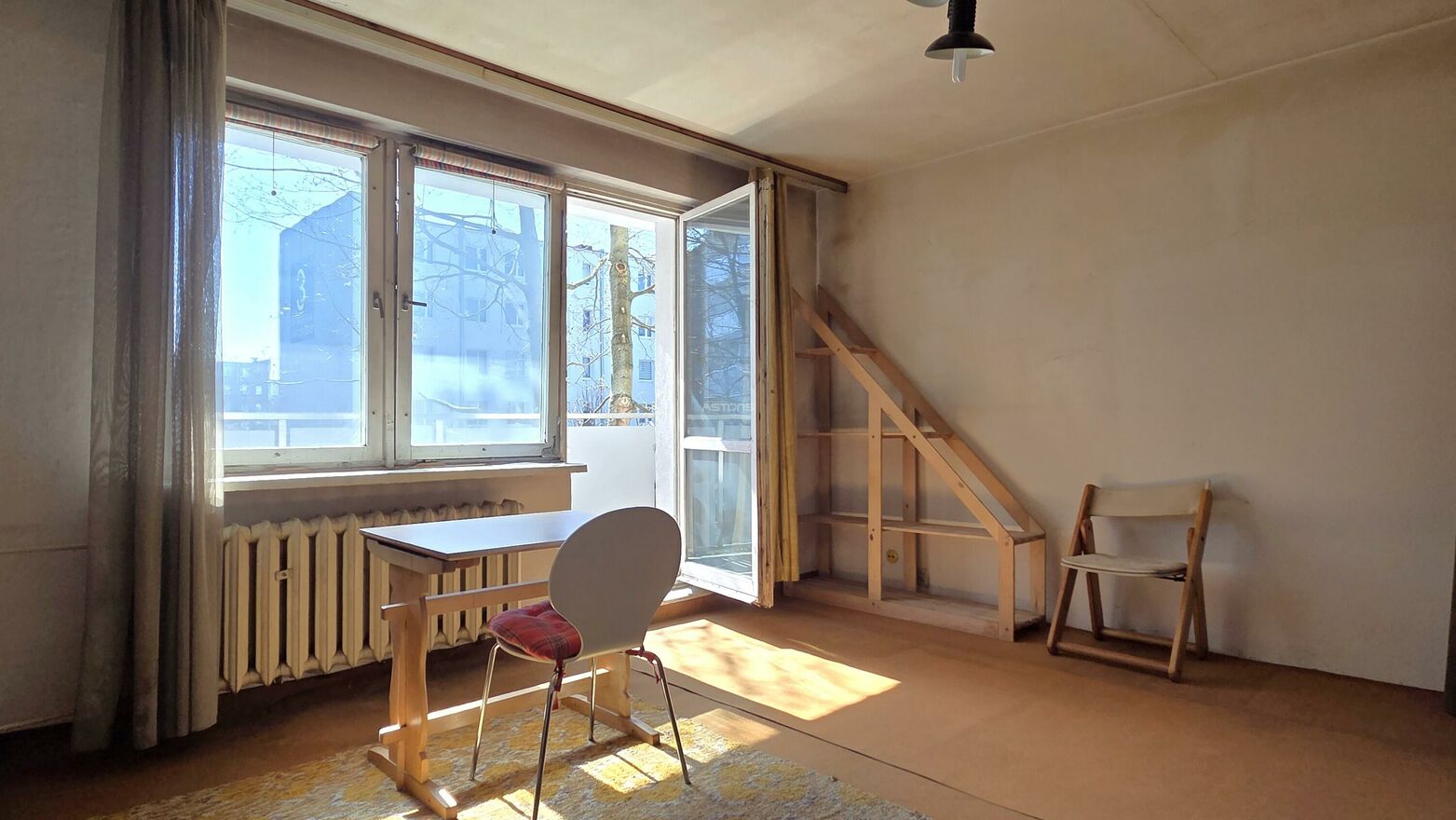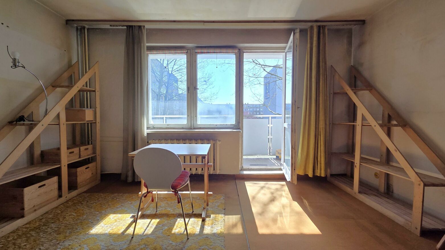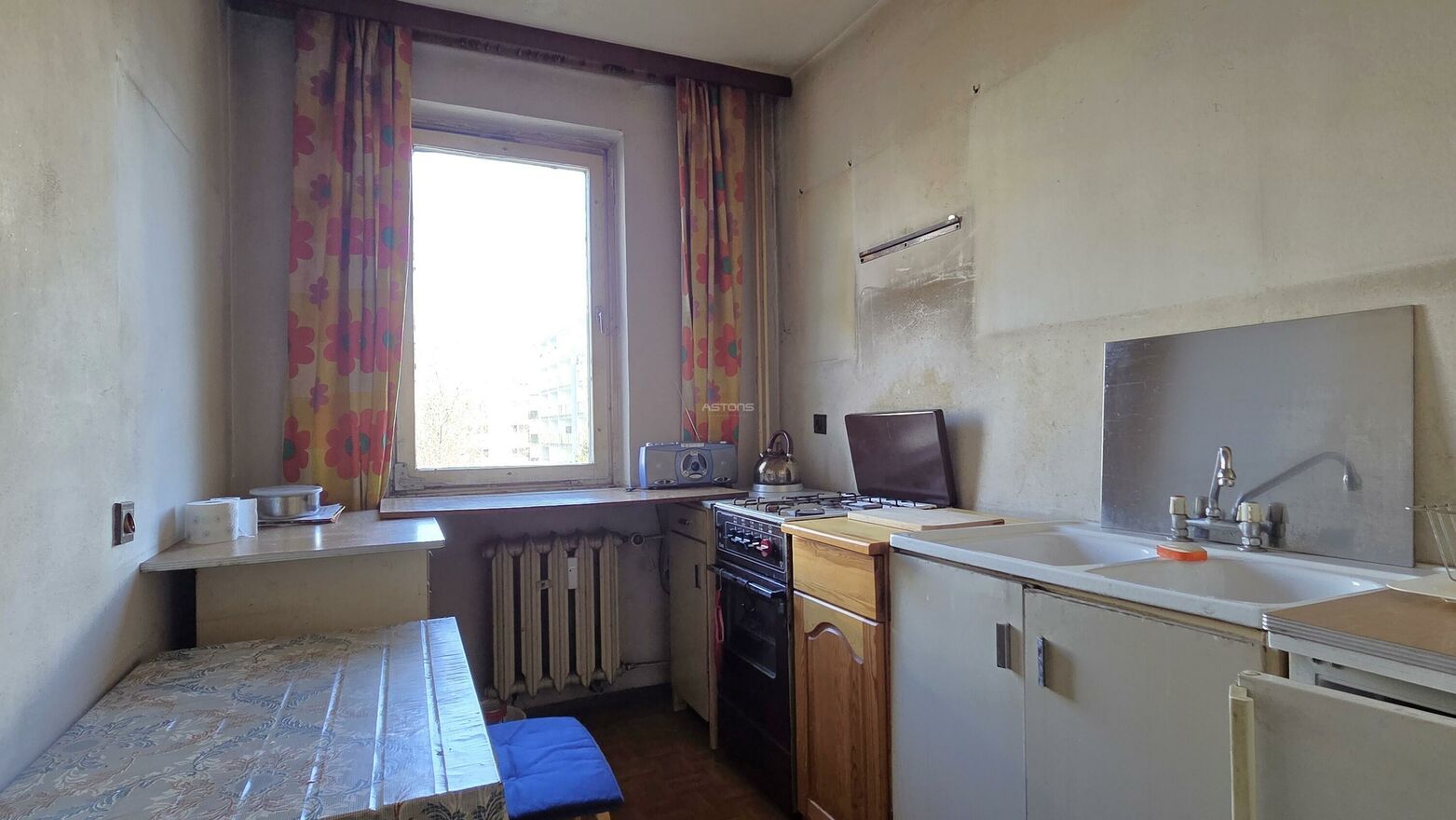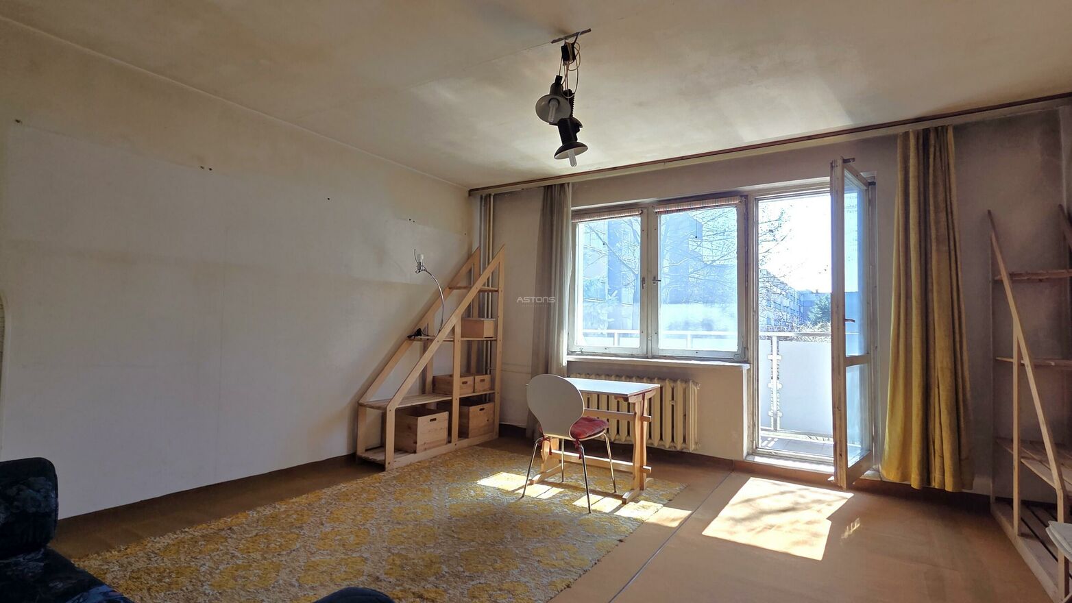 Lokal przeznaczony jest do kapitalnego remontu, w tym do wymiany stolarki okiennej (okna są starego typu). Jednocześnie przeprowadzenie prac remontowych jest stosunkowo proste na podłogach znajduje się jedynie wykładzina położona bezpośrednio na betonowej posadzce. Jedynie w łazience i toalecie na podłodze znajdują się płytki.