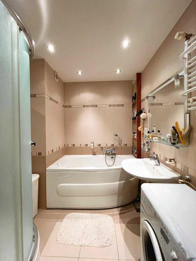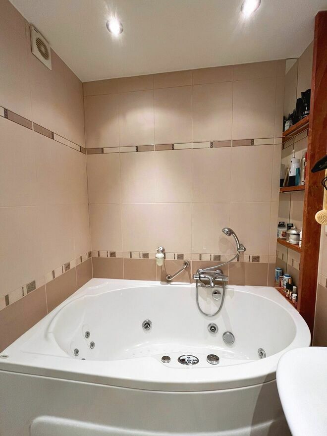 łazienkę z oddzielnym prysznicem oraz wanną z hydromasażem (jacuzzi),
