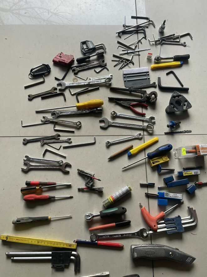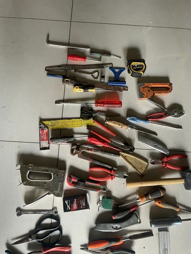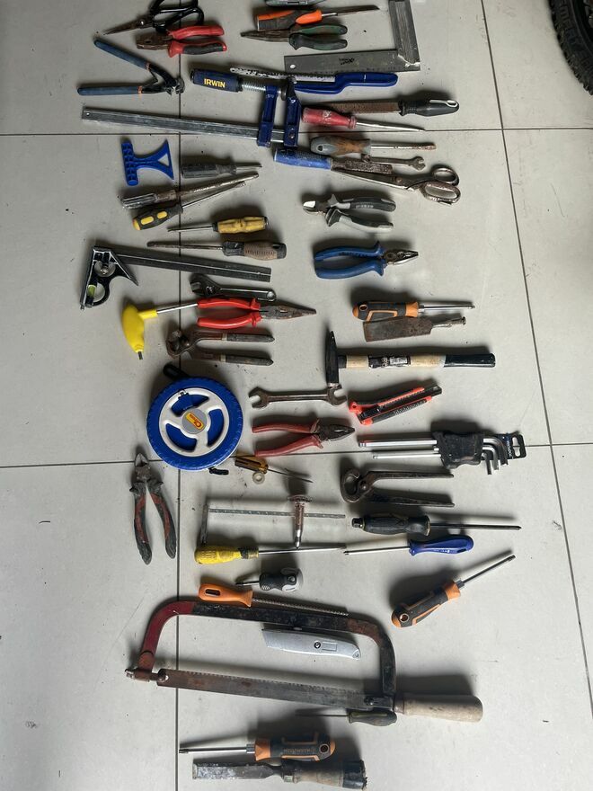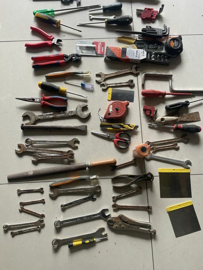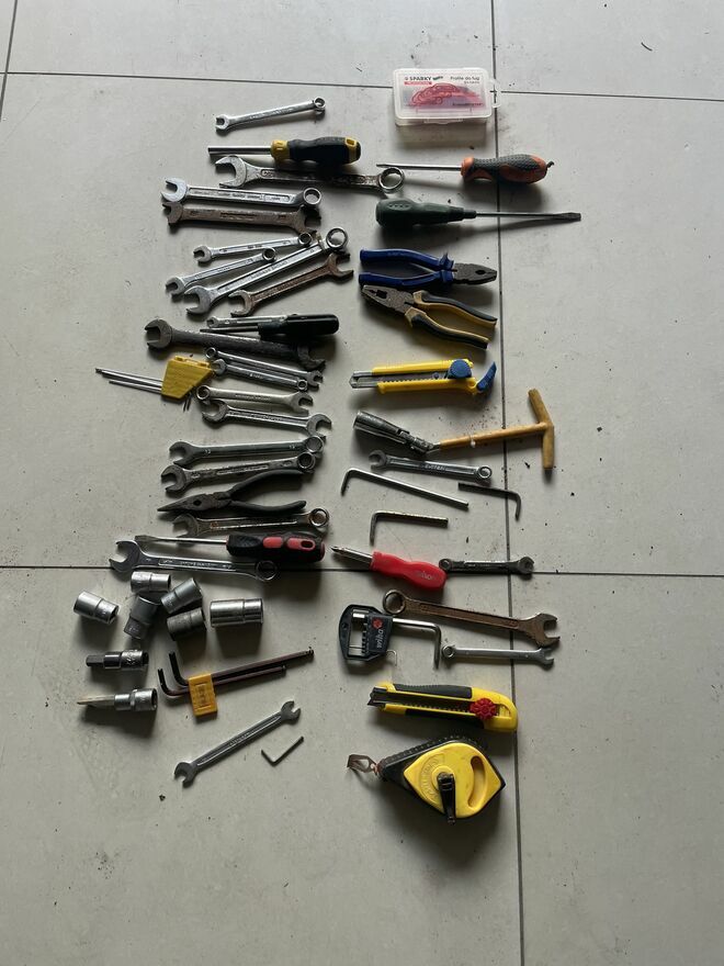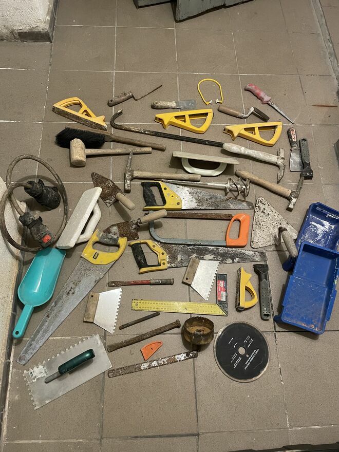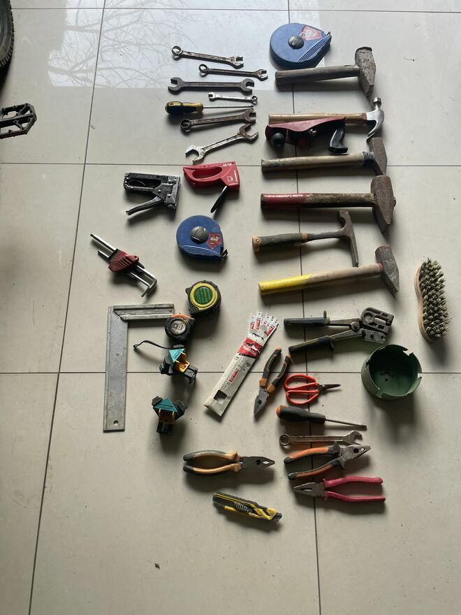 Witam, narzędzi typu śrubokręt , klucz po 5zł kombinerki 10zł, młotki 10zł, tarcze do pił do zagłębiarki i ukośnicy 25zł, do formatówki 80zł, kije do malowania po 20zł, takery rapid i bardziej wypasione rzeczy pół ceny najtańszego nowego co można znaleźć na necie, za wszystko ponad 390sz. Miotły ,skrzynki1000złSprawdź zainteresowanie tym ogłoszeniem
