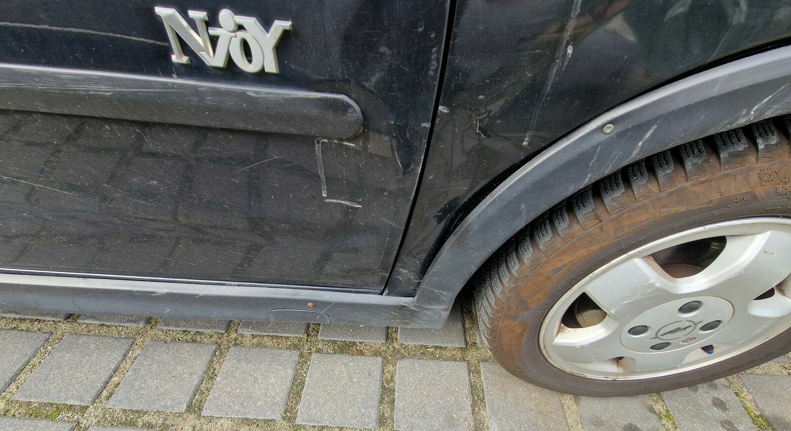 Pojazd posiada liczne ślady użytkowania, widoczne rysy, prawy bok po kolizji drogowej uległ skrzywieniu, drzwi skrzywione. Nadkole i listwa z prawej strony przymocowana na śruby, tylne okno : widoczne rysy, na listwie podłogowej widoczna rdza, przednie nadkole z prawej strony uszkodzone. Dach i maska malowana – inny kolor niż kolor samochodu.