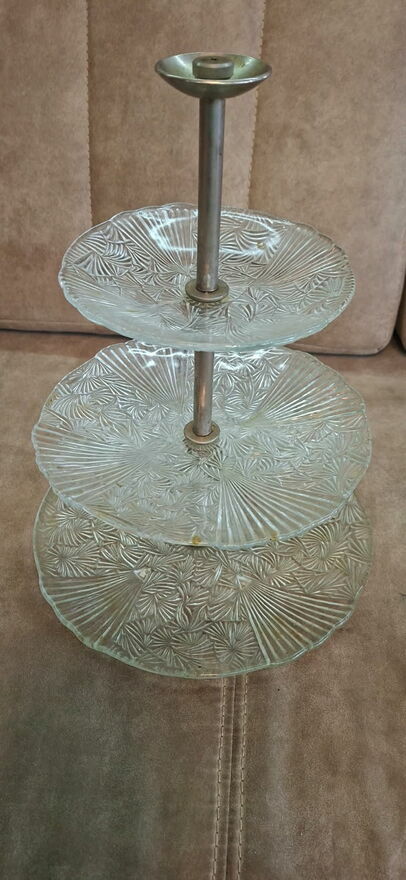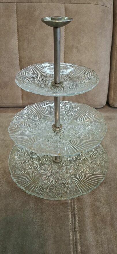 Patera trzypiętrowa szklana z uchwytem do ciasta owoców