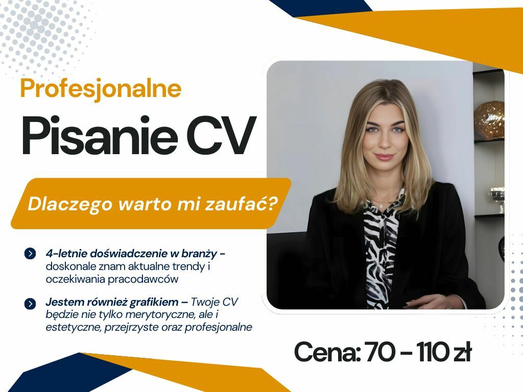 Dobrze przygotowane CV to pierwszy krok do zdobycia wymarzonej pracy. Jeśli chcesz, aby Twój dokument wyróżniał się wśród setek aplikacji – mogę Ci w tym pomóc. Oferuję pisanie CV od podstaw oraz poprawę istniejących dokumentów, tak aby były nowoczesne, czytelne i zgodne z oczekiwaniami rekruterów.