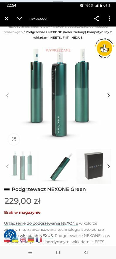 Urządzenie do podgrzewania NEXONE w kolorze zielonym to zaawansowana technologia stworzona z myślą o wkładach NEXUS. Podgrzewacze NEXONE są w 100% kompatybilne z bezdymnymi wkładami HEETS oraz FIIT (wkłady tytoniowe) oraz NEXUS i NEXUS FREE (wkłady ziołowe). Podgrzewacze NEXONE nie są kompatybilne z wkładami NEO oraz TEREA.