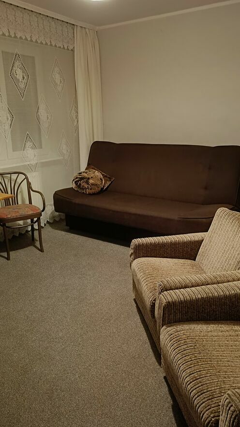 Pokój dwuosobowy na 1 piętrze w szeregowcu. Pokój przestronny ciepły ok 16,5 m kw. Cisza spokój.Wyposażony w dużą dwuosobową kanapę, szafę, stolik z krzesłami i komodę z tv i telewizor.