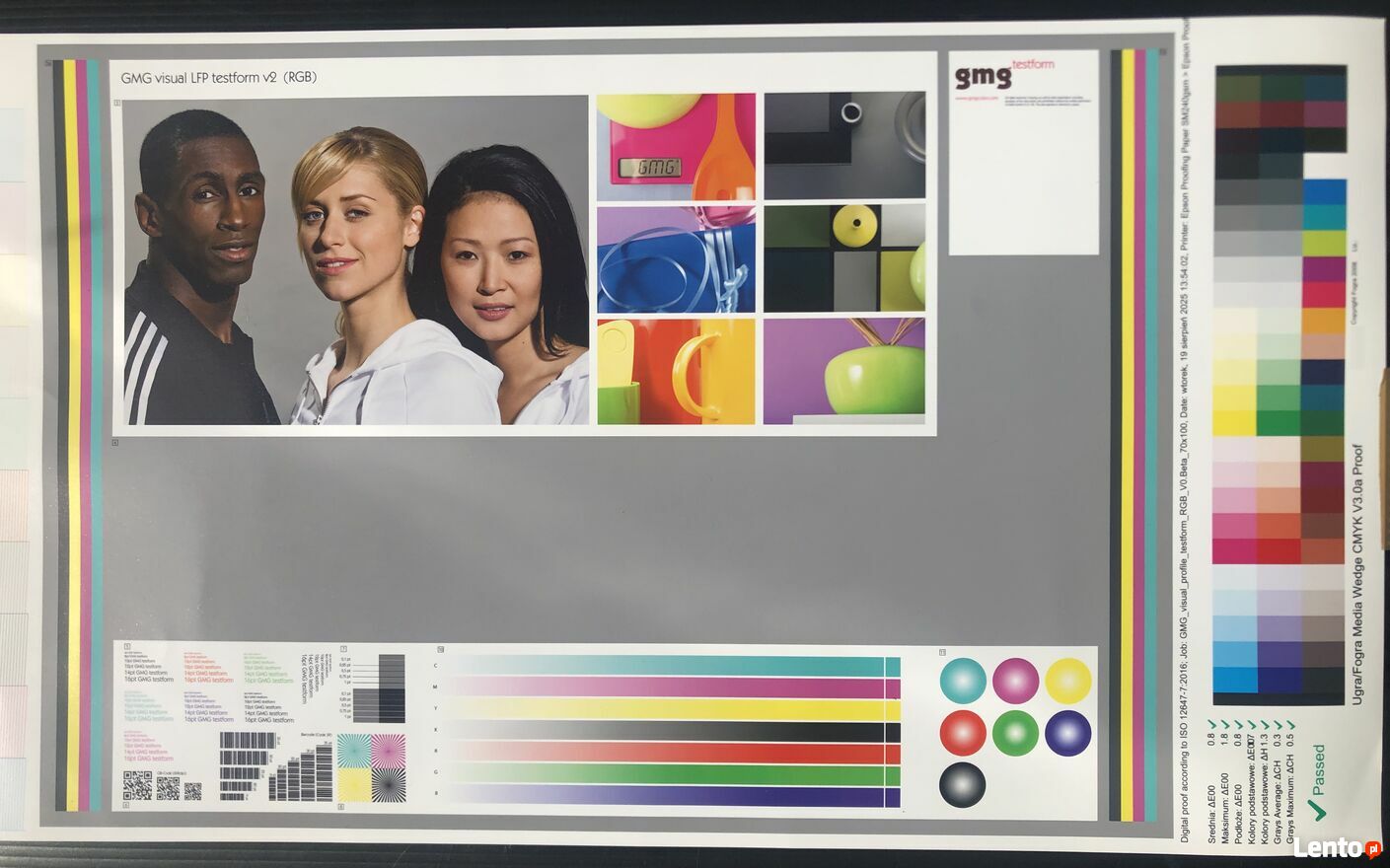 - raporty certyfikacji wydruków próbnych Fogra proof kolorystyczny cyfrowy dostępne online do 30 dni w chmurze lub dostępne w pliku PDF.