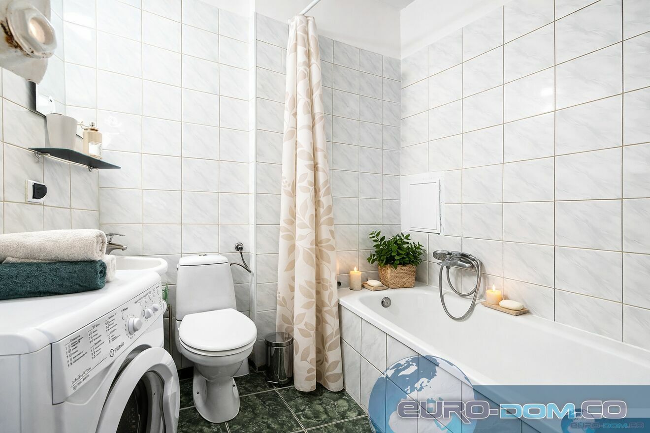Łazienka: wyposażona w wannę, umywalkę oraz pralkę.