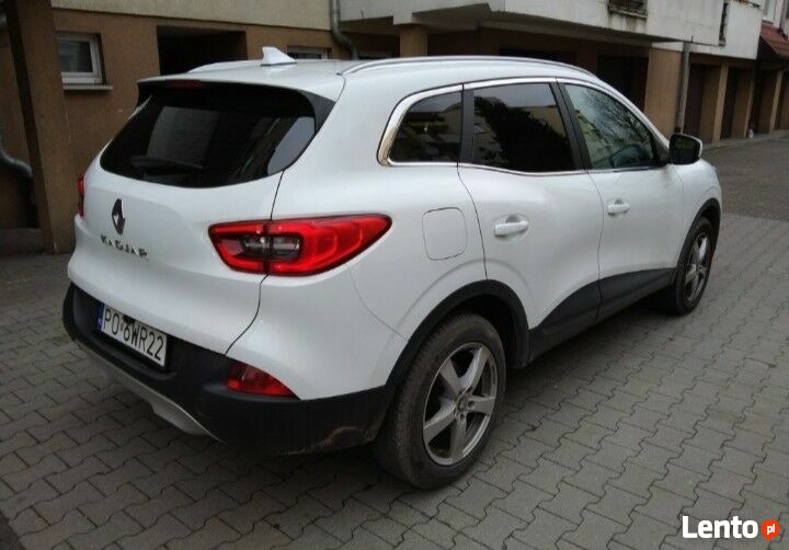 WitamDo sprzedania Renault Kadjar z 2017roku, jestem drugim właścicielem tego auta, kupiony w niemieckim salonie przez Polaka i sprzedany w Polsce, autentyczny przebieg, wersja Limited 1,2Tce, 6 biegowa skrzynia, kolorowy elektroniczny wyświetlacz, 17cali felgi aluminiowe z oponami \"wielo sezonowymi\", przebieg 154 tyś km, wersja wyposażenia Limited, skórzany daszek liczników, skórzana kierownica, kratki nawiewów z chromem, listwy progowe z emblematem, zderzaki z wstawką lakierowaną i chromem, relingi dachowe, antena typu "płetwa rekina", radio multimedialne, kamera cofania, 2 lata temu wymienione kompletne sprzęgło przy przebiegu 142tys km, na bieżąco serwisowany.