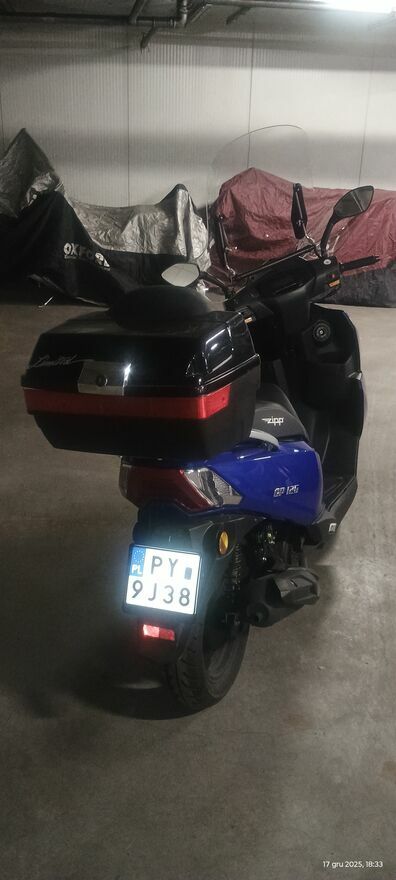 Sprzedam skuter Zipp GP125.Rok produkcji 2023,pierwsza rejestracja 2.05.2025.Na gwarancji fabrycznej do 04.2027. Przegląd Do 04.2028.Ubezpieczenie do 05.2026r.Dodatkowo dołożona szyba i kufer.