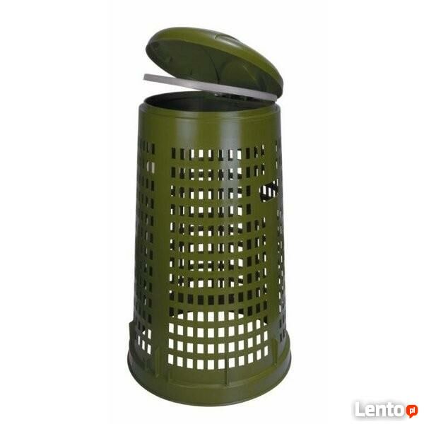 Wyposażony w obręcz do worków ,możliwość zamontowania rożnych worków np 100 L do 120 L