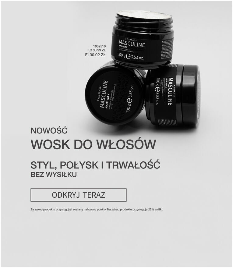 Wosk do stylizacji włosów Farmasi Masculine zapewnia włosom utrzymanie idealnej fryzury, odżywienie i nawilżenie przez cały dzień.