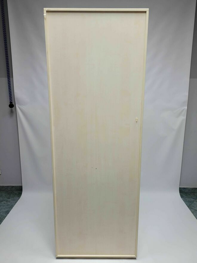 Szafa 2 drzwiowa wyposażona w 5 drewnianych półek.