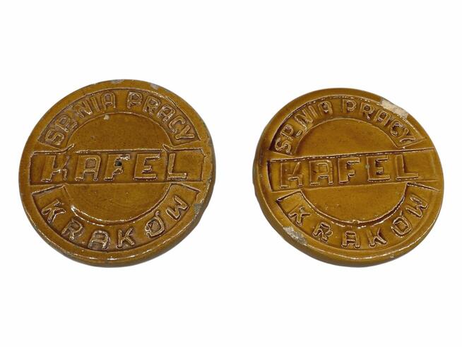 2 szt zatyczek do pieca kaflowego Spółdzielni Pracy KAFEL w Krakowie • Średnica zewnętrzna: 13,5 cm • Średnica ...