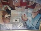 MAKOWSKI TADEUSZ - obraz olejny sygnowany - karciarze . Z tyłu pieczęć galerii - słabo czytelna i nieczytelna metka . ...