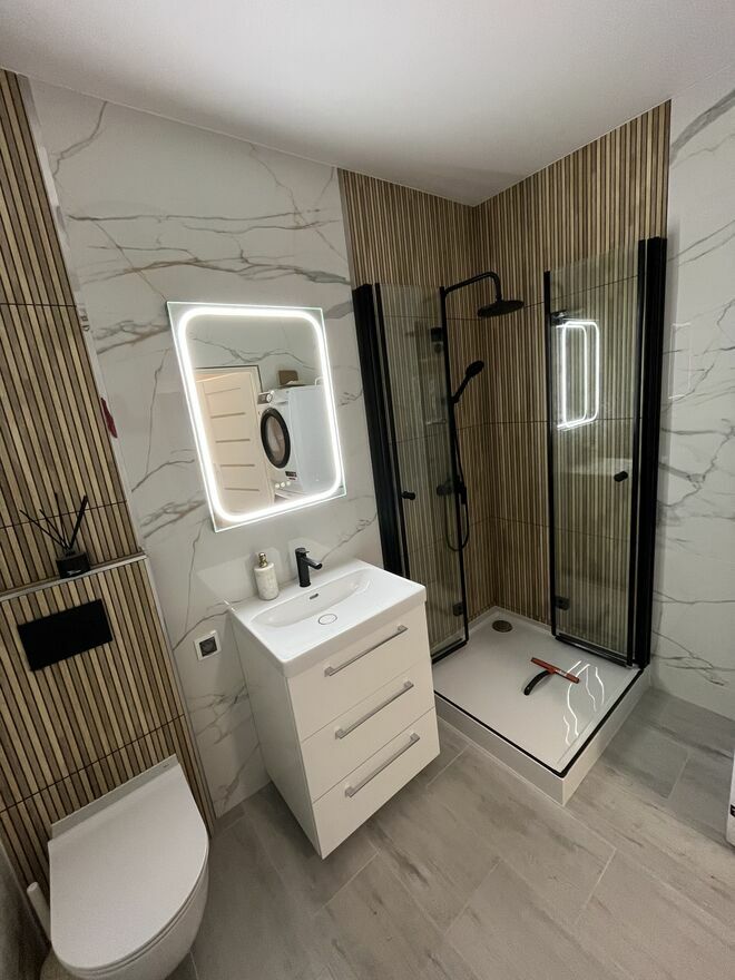 - montaż armatury (wc, umywalka, kabina, bateria)
