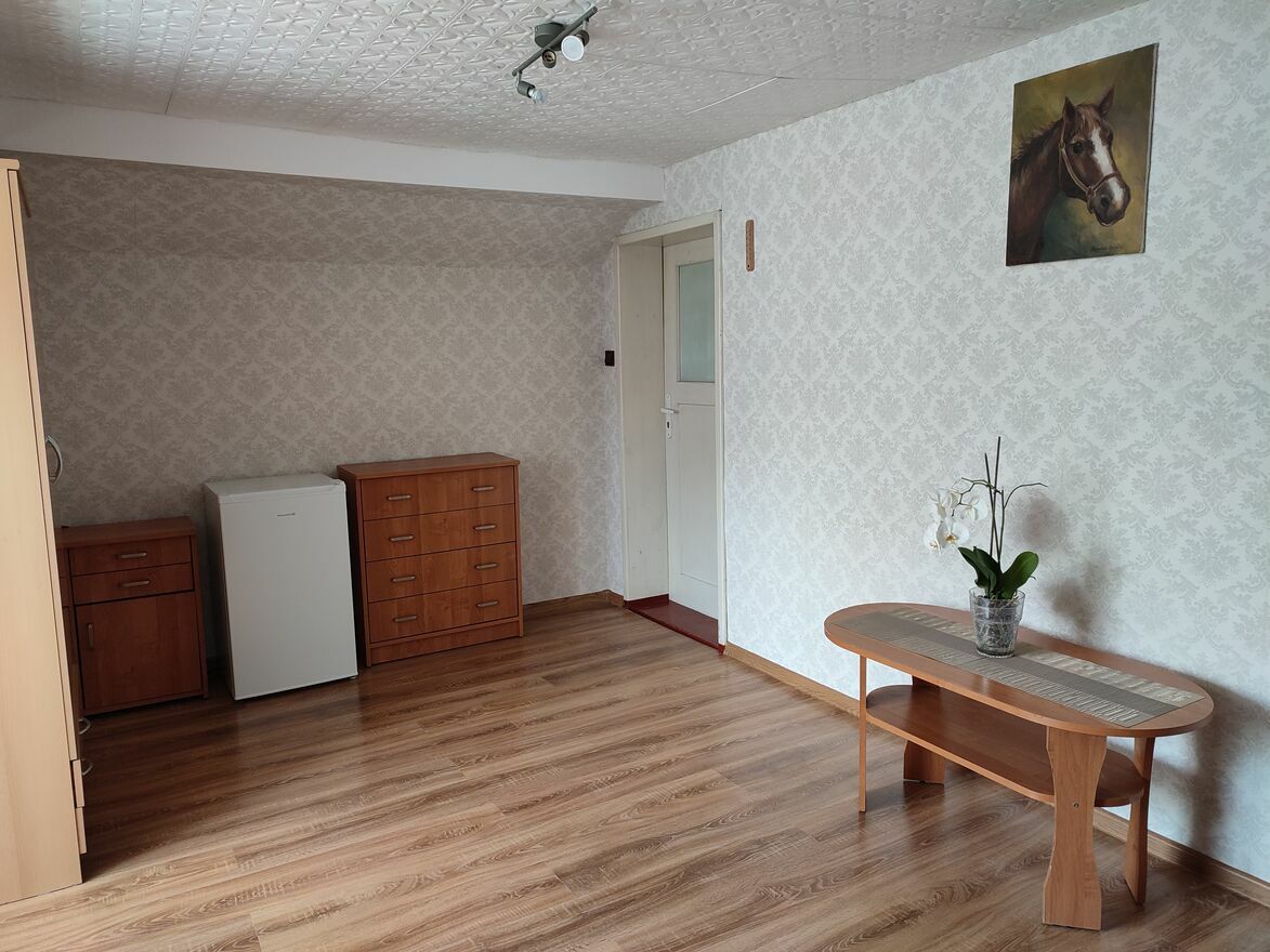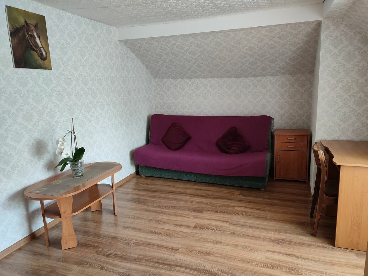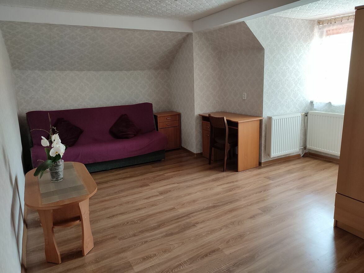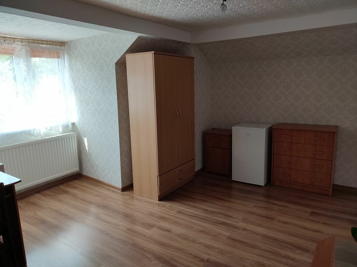 - wyposażenie pokoju: biurko, szafa, kanapo-tapczan, krzesło, komoda, regał, stoliczek, mała lodówka, a w oknie roleta