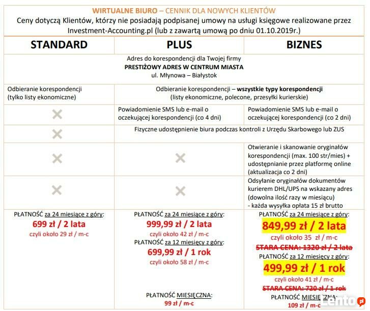 WIRTUALNE BIURO JUŻ OD 19 zł / m-c