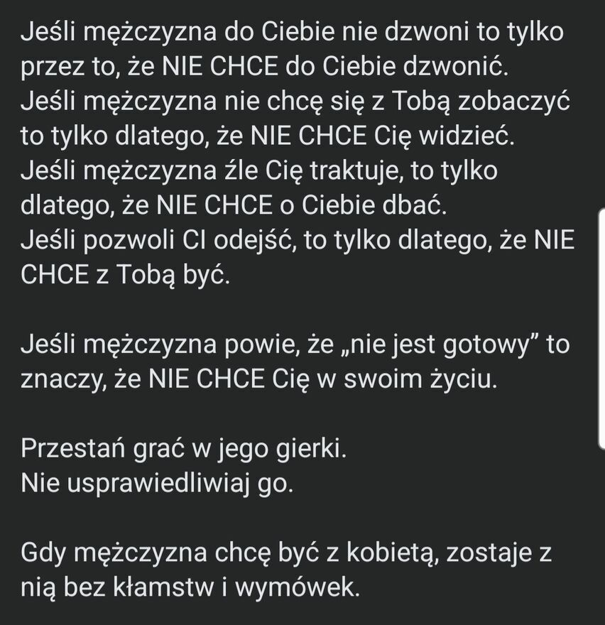 Szukam mężczyzny do stałego i poważnego związku w wieku ok 40-46 lat. Partnera na każdy dzień, na życie, najlepiej do grobowej deski. Mężczyzny silnego, dojrzałego, odpowiedzialnego, który ma zasady i honor. Mężczyzny, który wie że kobieta nie jest dodatkiem, rozrywką na nudne wieczory, a ważną częścią jego życia. Mężczyzny, który nie ucieka kiedy jest ciężko, ale jest gotowy aby przejść przez to razem. Kogoś kto da mi swoją obecność. Bo to obecność mężczyzny decyduje o tym, czy kobieta czuje się w jego ramionach jak w domu.Coś o mnie. Szczupła blondynka, wykształcona z dobrą pracą. Singielka, bez dzieci. Lubię czytać książki, uprawiam sport. Nie jestem feministką. Mężczyzna i kobieta nie mają się zastępować, a uzupełniać.