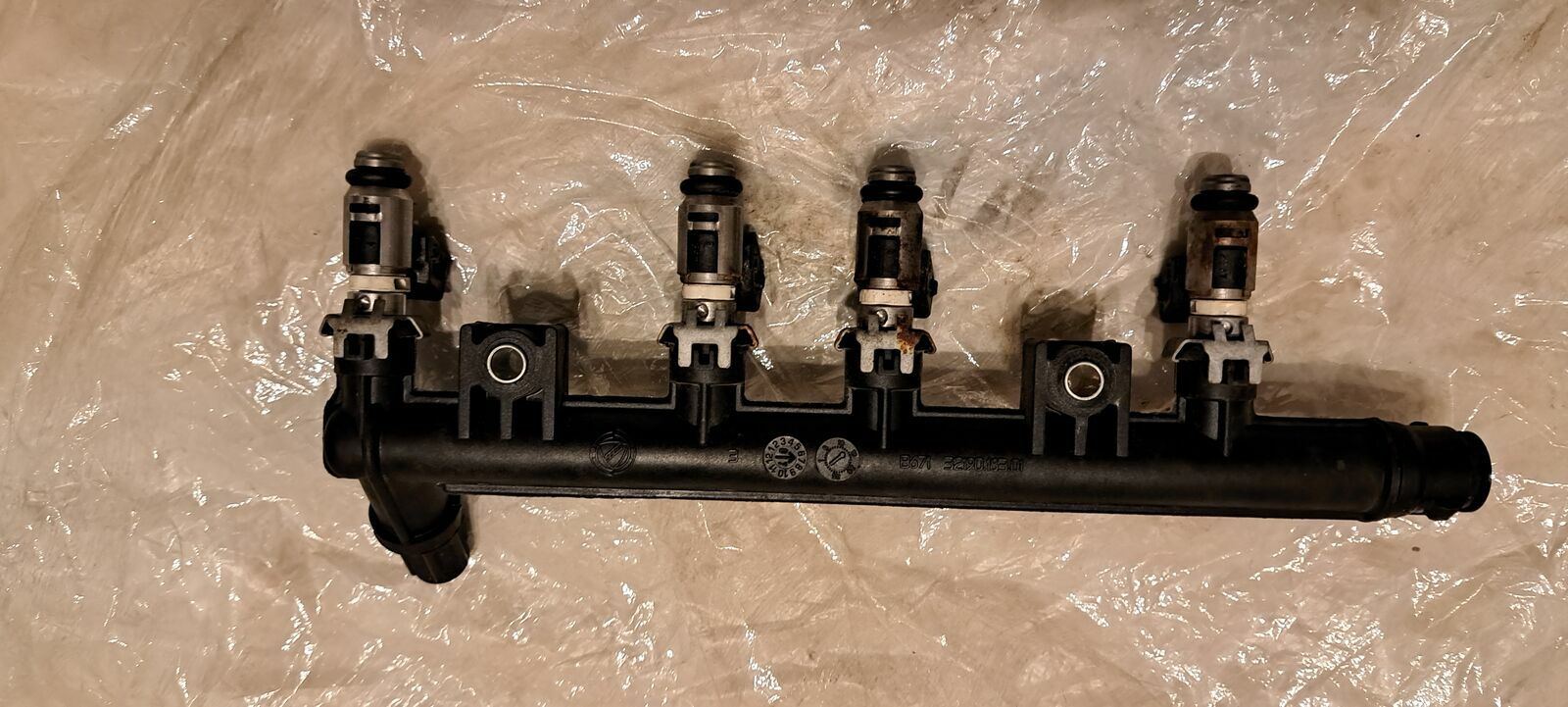 Listwa z 4 wtryskiwaczami -3 wtryskiwacze sprawne 1 uszkodzony -na kostce elektrycznej podczas wymiany świec. Przebieg ok 90tys. km.Łukasz