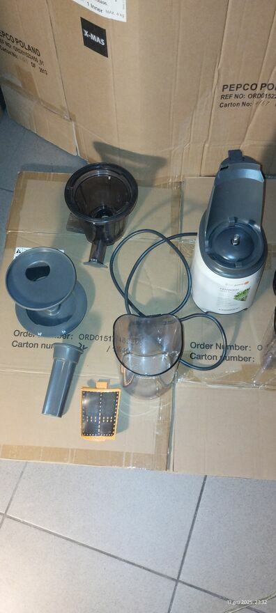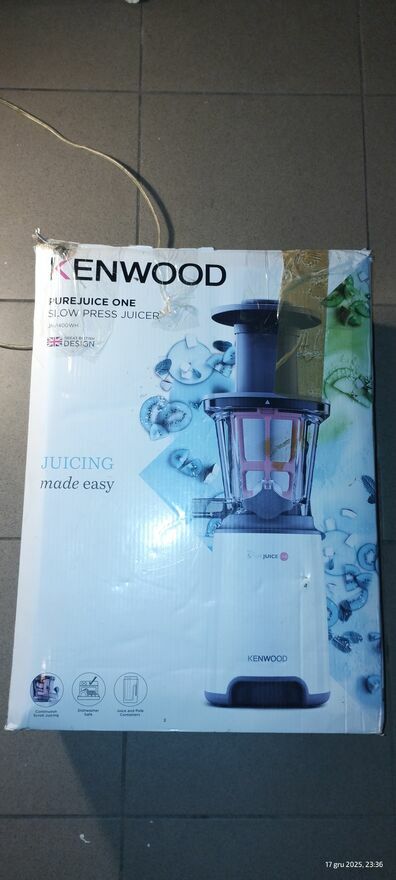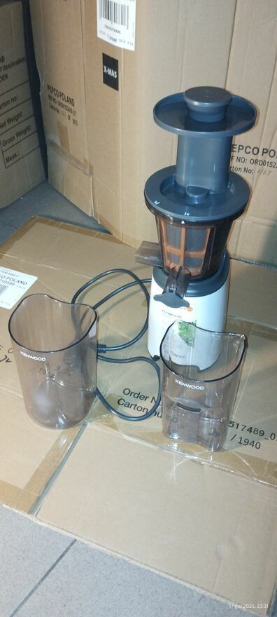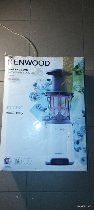 Dzięki pracy na wolnych obrotach uzyskany z tego typu wyciskarki sok zachowa więcej enzymów, błonnika i witamin. Otrzymane efekty będą więc lepsze, niż w przypadku używania sokowirówek. To urządzenie wyciśnie sok także z warzyw liściastych. KENWOOD PureJuice One JMP400WH o mocy 140 W i prędkości 55 obr./min pozwoli na przygotowanie świeżych soków o wysokiej wartości odżywczej.Urządzenie użyte że 4 razy , ślady użytkowania na plastikach , zbiornikach na odpadki , głównie przez to że się otarły o siebie , sprzęt w idealnej kondycji , zapraszam na inne aukcje , każdy znajdzie coś dla siebie w dobrej cenie zapraszam