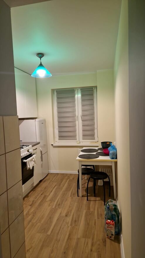 Mieszkanie znajduje się w niskim bloku na parterze. Przystanek autobusowy 3min, tramwajowy 5 min. Obok bloku Carrefour, Rossmann, apteka, piekarnia, pizza hut itp.