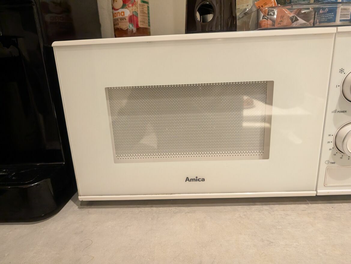 3. Kuchenka mikrofalowa Amica model, AMGF20M1GW. Wymiary (SxWxG): 45,2 cm x 26,2 cm x 34,8 cm. Sterowanie mechaniczne, pojemność 20l. Grill kwarcowy;