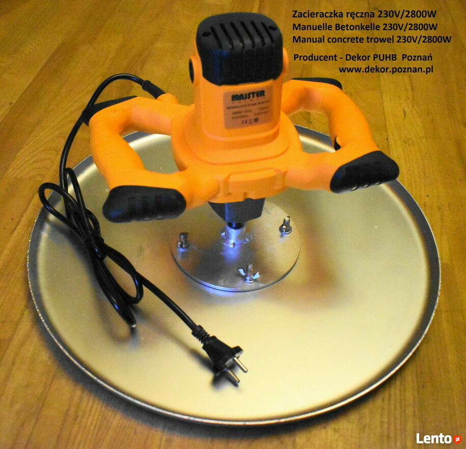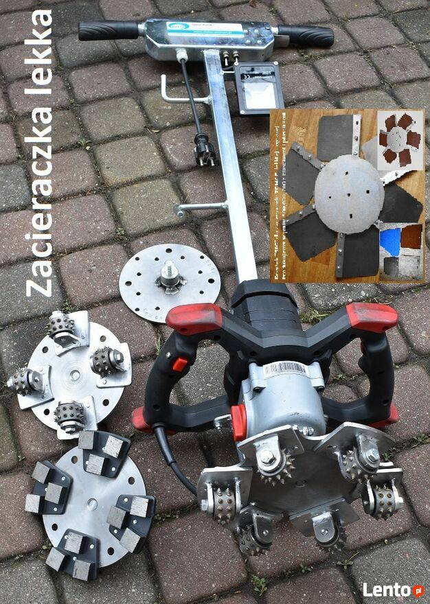 Zacieraczka ręczna do wygładzania betonu w trudno dostępnych miejscach. Jednobiegowa, lekka, dysk mały w komplecie.Także dyski wyokrąglone do lekkiej zacieraczki i ręcznej do wygładzania betonów na budowie w heide parkach
