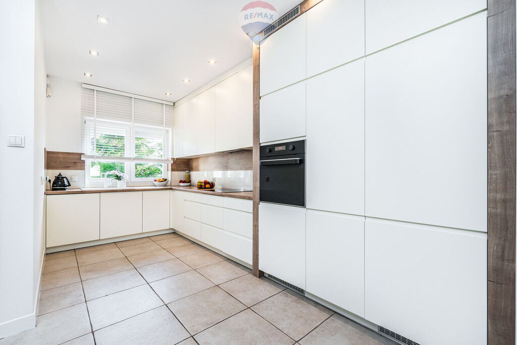 - nowoczesna kuchnia z meblami w zabudowie i wyposażeniem z roku