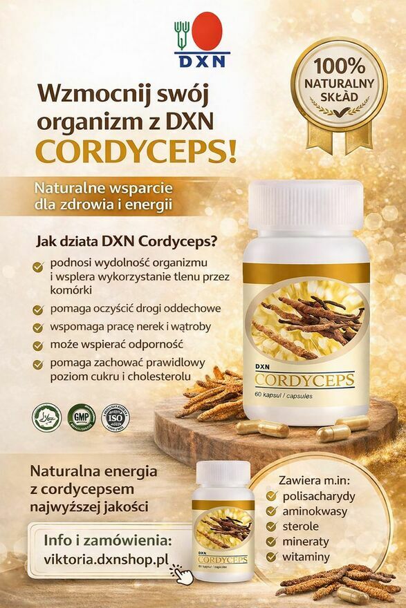 Cordyceps DXN powstaje z wysokiej jakości grzybów Cordyceps sinensis, uprawianych w kontrolowanych, organicznych warunkach na podłożu roślinnym.