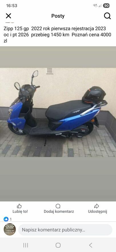 Zipp gp 125 rok 2022 pierwsza rejestracja 2023 oc I pc do 2026 lipiecPowiadom o podobnych ogłoszeniach